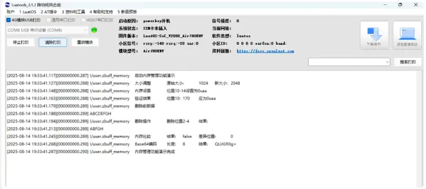 Air780EHV核心板通过LuaTools烧录内核固件和demo脚本代码,烧录成功后开机运行查看运行结果。
