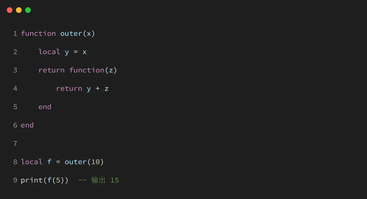 但是由于匿名函数在你能阅读到的 Lua 代码里面出现的频次实在是太高了,所以你也不得不重视和习惯匿名函数。