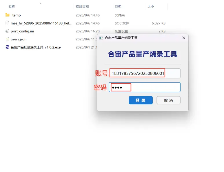 如果此目录下没有该配置文件,就先运行批量烧录工具程序,双击运行即可,登录方式跳转本章第四节,也可以先不登录,运行就会有 port_config.ini。