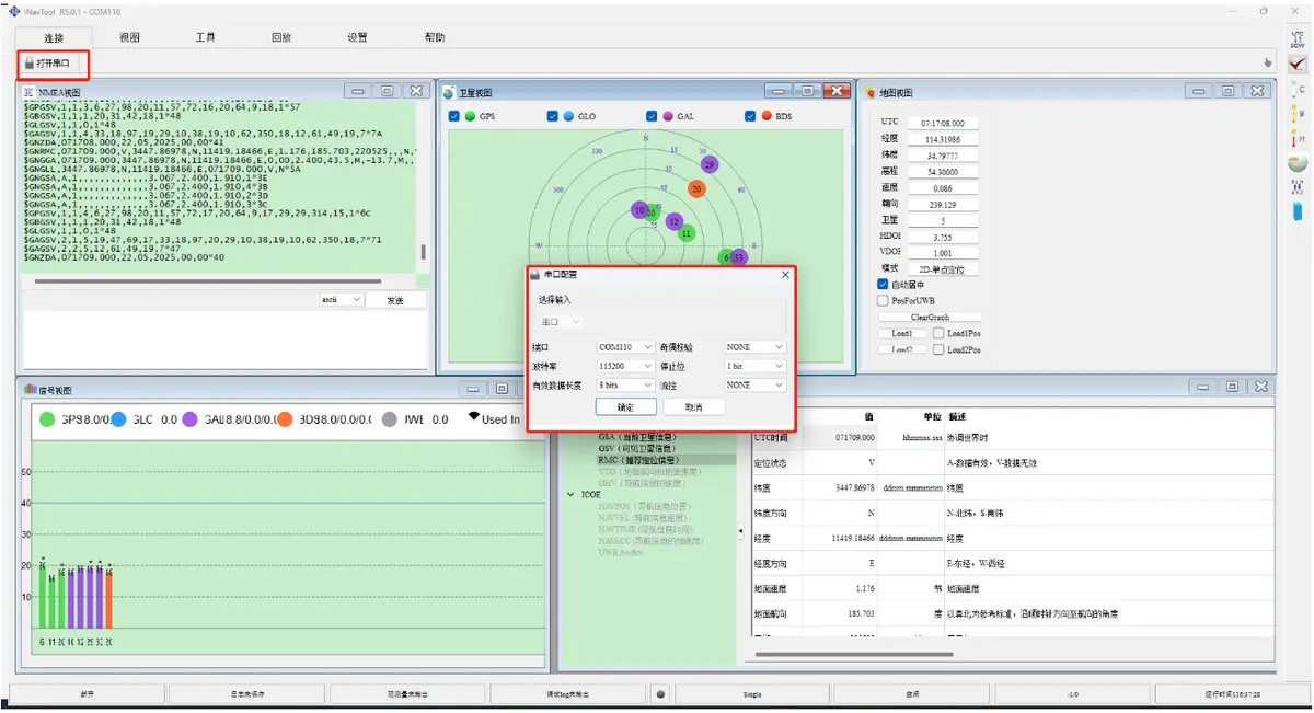 如果不满足只是查看当前 CN 值、可见卫星数、当前经纬度对应坐标等信息,还需要测试 GNSS 性能,还要有个直观的展示界面,可以参考如下方法: