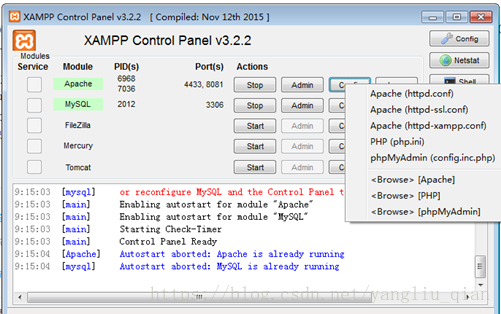 下图中,我的Apache 和MySQL均正确加载。