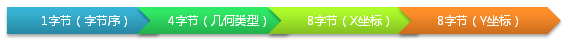 除此之外,WKB在第一位还存储了一个额外的字节用来标识字节序[1] (0=Big-Indian,1=Little-Indian)。因此,对于一个点(不带M值的二维点)来说,它的WKB描述应该类似下面的结构,总共占据21个字节: