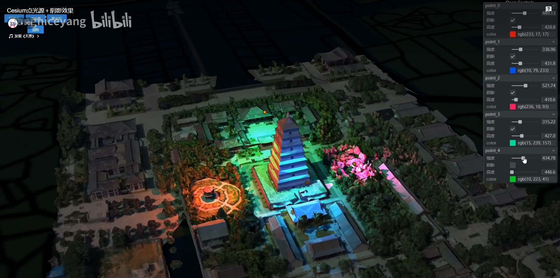 1.cesium实现点光源加阴影效果,可单独控制阴影开关等参数,
