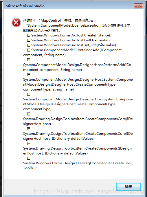 VS2012 VS2015解决 “创建mapcontrol组件失败,您必须有许可证才能使用此ActiveX控件“,具体报错信息如下图: