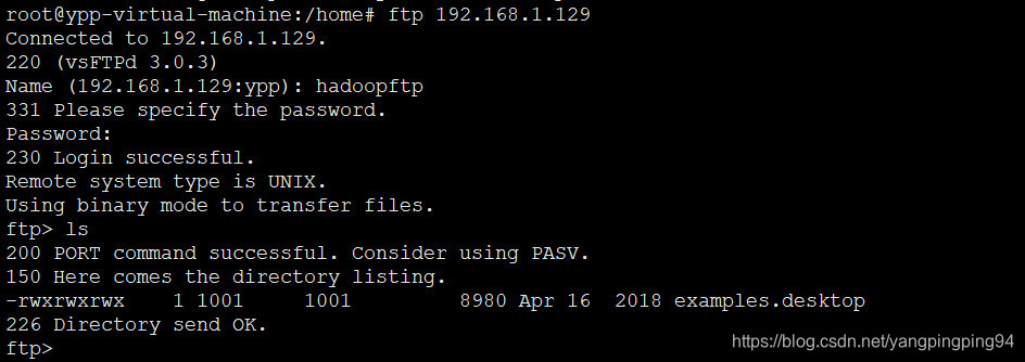 使用命令连接已按照ftp服务的机器,验证是否成功。