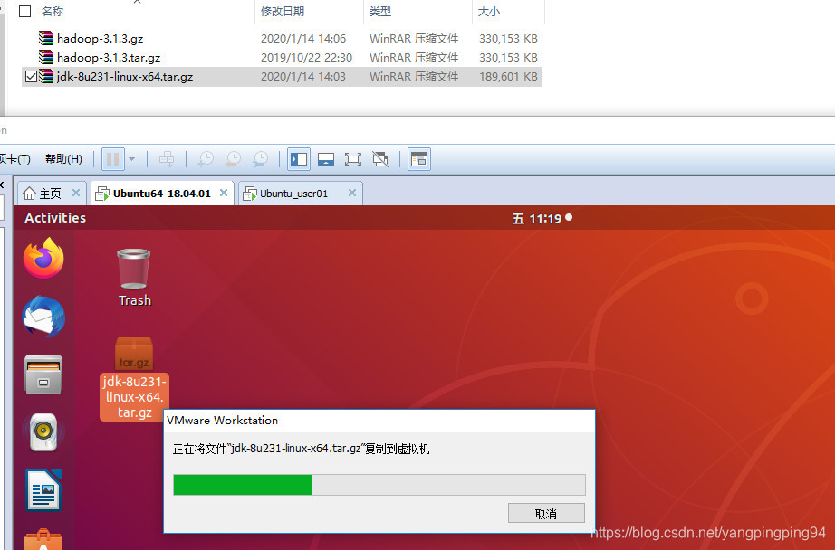 3. 之前有安装VMware Tools工具,可将已下载好的jdk直接粘贴进来。