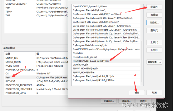 系统变量——新建 变量名:MYSQL_HOME