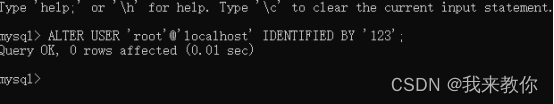 ALTER USER 'root'@'localhost' IDENTIFIED BY '新密码';