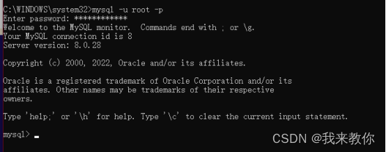输入命令登陆: mysql -u root -p