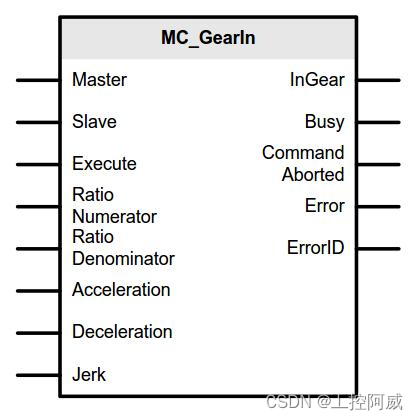 图 2-1 MC_GearIn 命令表 2-1 命令输入/输出参数说明