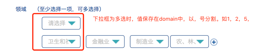 一、下拉框实现增加,保存在字段domain中,以","号分割。并将值回现在jsp中选中展示