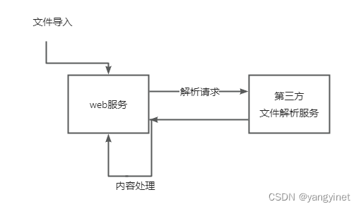 web服务【收文件流】 -> 【保存文件】 -> 向文件解析服务【发送请求】。