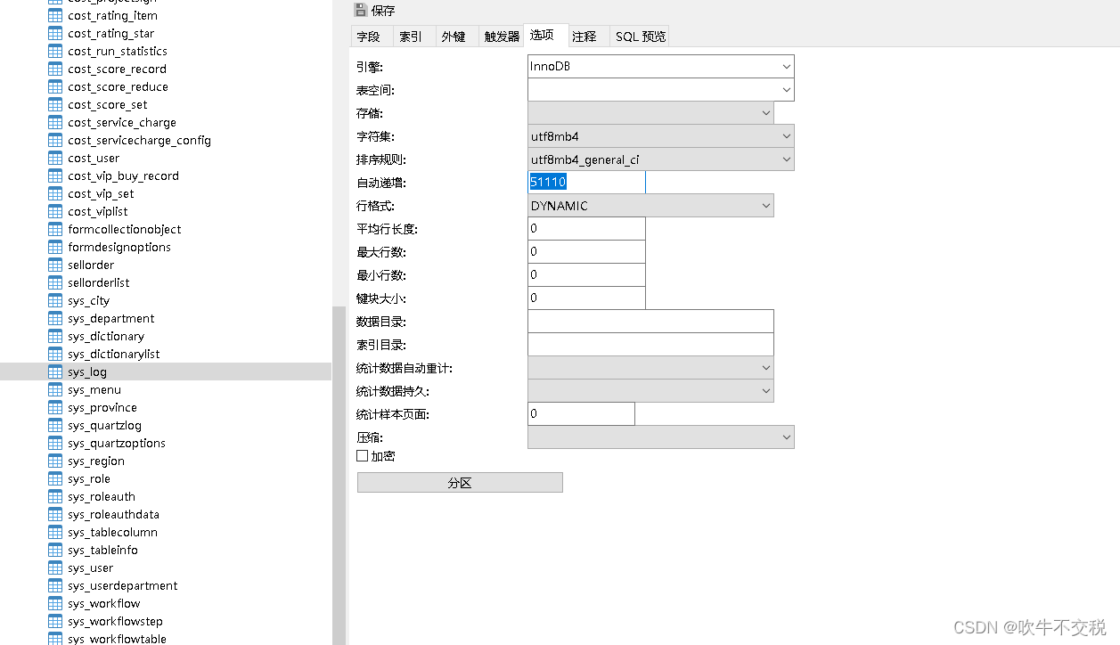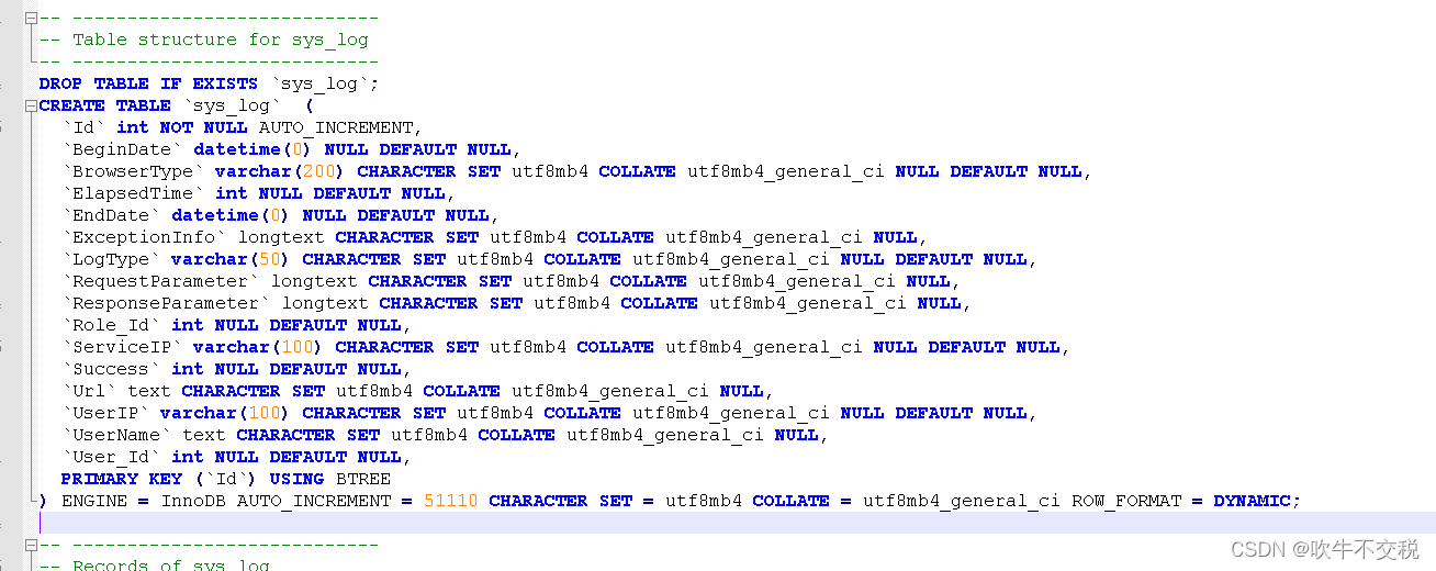 然后检查sys_log表的建表脚本,发现有如下行: