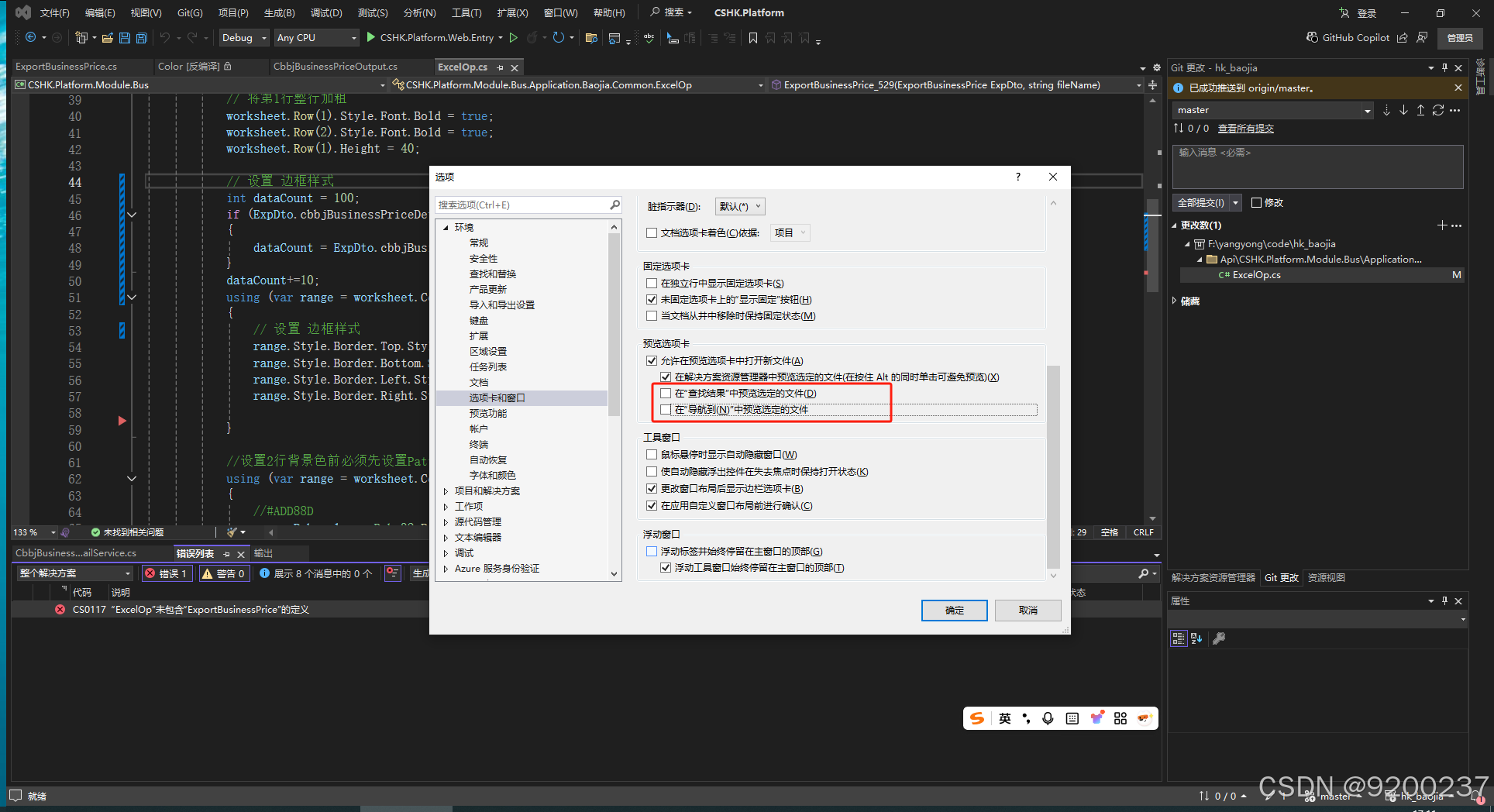 Allow new files to be opened in the preview tab和Preview selected files in Solution Explorer