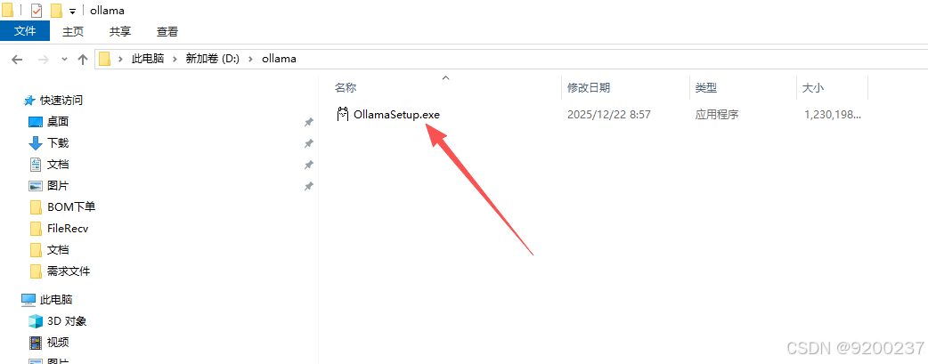 2、把文件复制到C盘以外的磁盘,比如我是复制到D盘指定目录ollama。 如果C盘空间足够的可以考虑安装到C盘。
