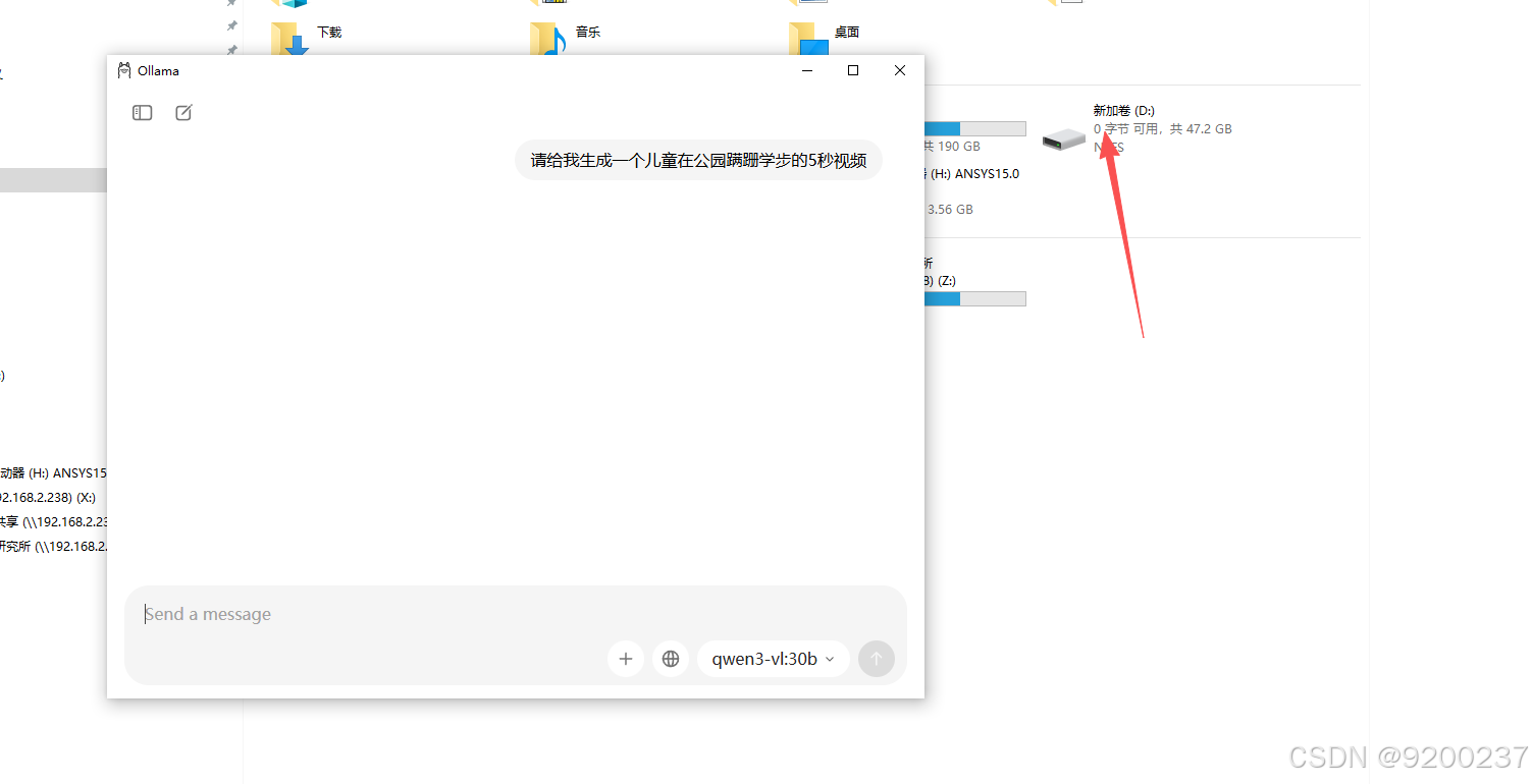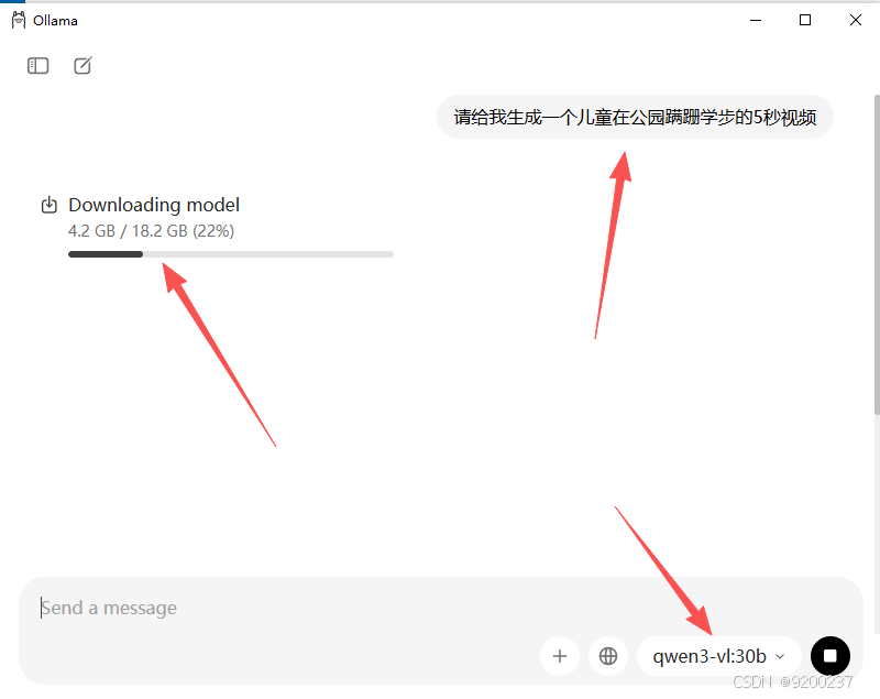 经过测试,新版本的ollama程序,在交互界面就可以自动安装大模型。 在交互界面右下角选中某个大模型,发出一个message,他就会自动下载这个大模型。 所以在运行交互界面时,我们要谨慎选择大模型,你随便选一个没安装过的模型交互的话他自动安装会把你的磁盘填满了。