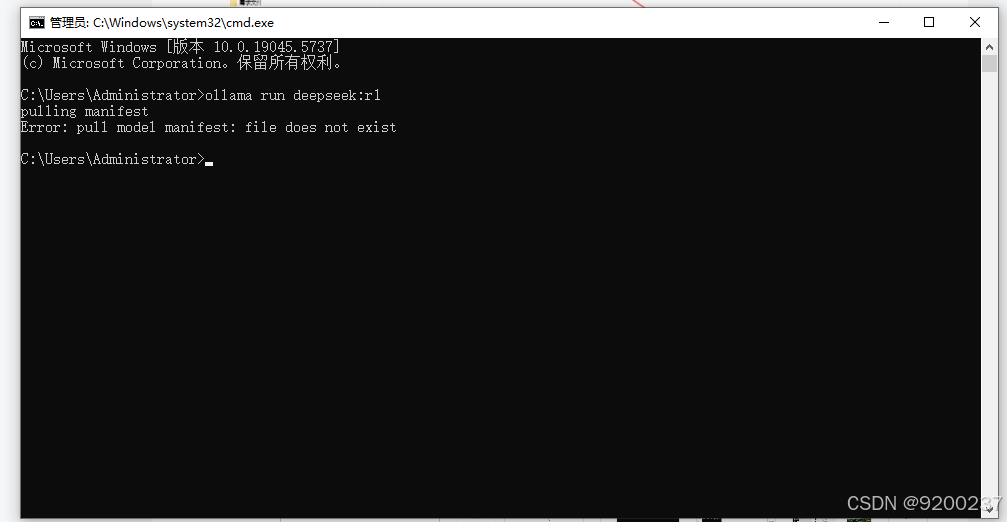 在CMD中,输入命令,进入默认路径:cd C:\Users\Administrator\.ollama