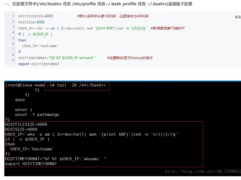 HISTTIMEFORMAT="%F %T $USER_IP:`whoami` " #设置新的显示history的格式