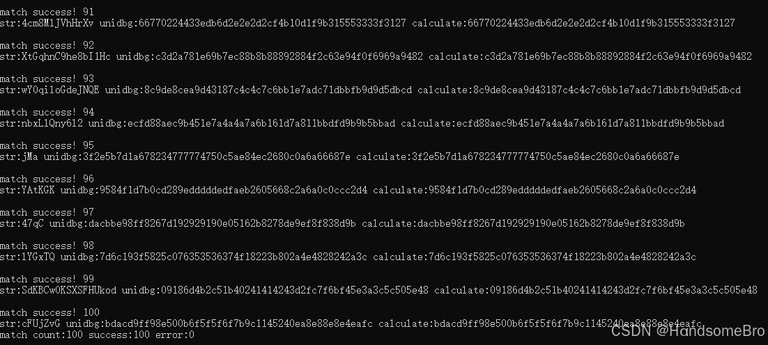 这部分就把unidbg的调用接口生成随机字符串跑个几百次,将明文与加密后的字符串存到文件然后用还原的算法调用计算比对就行了
