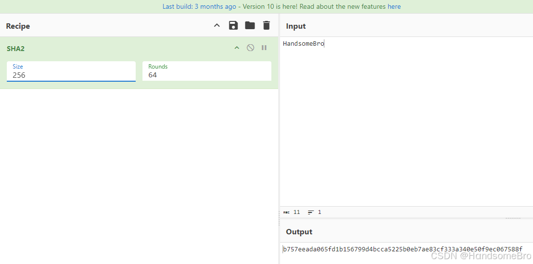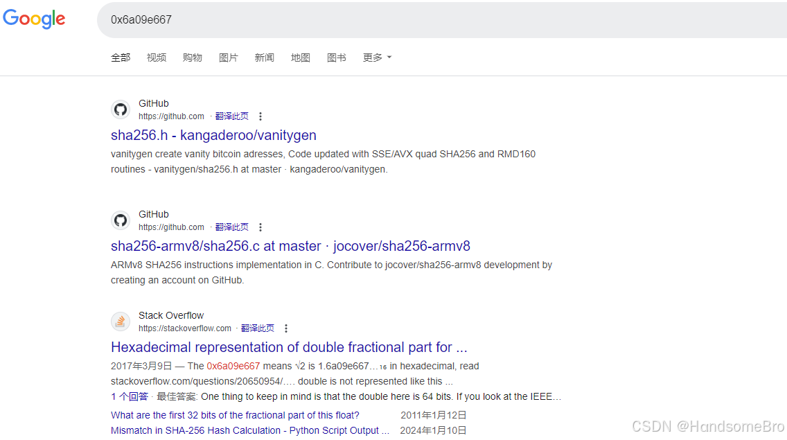 第二次sha256:用字符串HandsomeBro进行计算,H值是用的第一次的计算结果