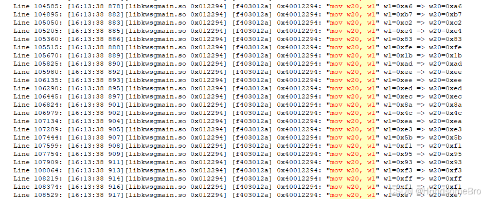 [09:34:01 134][libkwsgmain.so 0x0120f8] [68791f33] 0x400120f8: "bfi w8, w11, #1, #0x1f" w8=0x0 w11=0x76dc419 => w8=0xedb8832