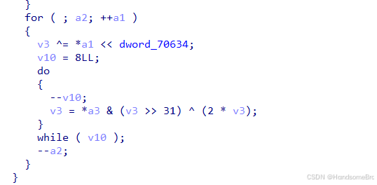试算结果符合我们的猜测是标准的CRC32,在回过头来看下算法,分析trace会发现