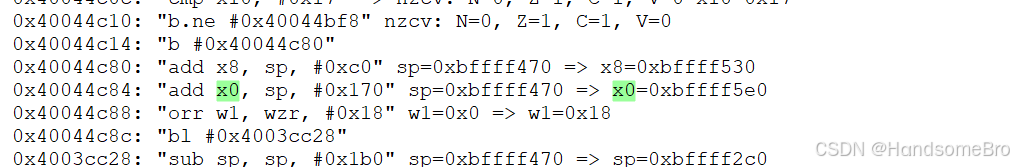 0x0 "str w10, [sp, #0x178]" w10=0x1 sp=0xbffff470 => w10=0x1