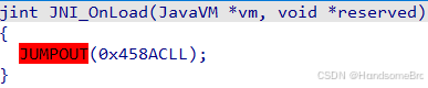 将定位到的lib文件导入IDA,f5之后发现 JNI_OnLoad出现jumpout了
