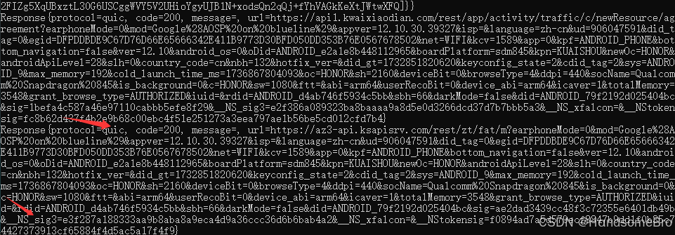 找到了__NS_sig3字段,这个是我们需要分析算法的字段,之前Burp Suite抓不到包的原因也出来了,走的是quic协议。