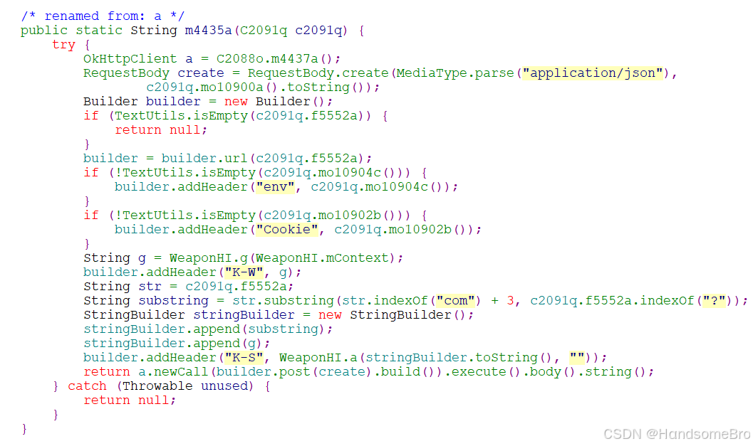 后面根据调用栈顺藤摸瓜分析就好,最后找到了发送函数发现跟okhttp有关