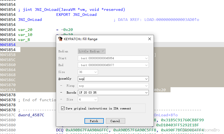 先手动使用IDA插件Keypatch试一下,先nop掉垃圾指令
