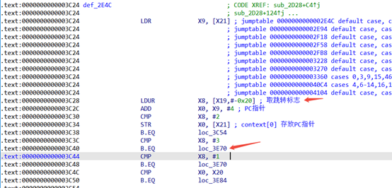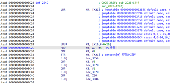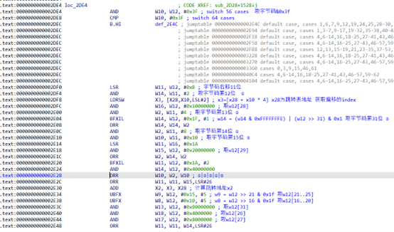 一般虚拟机函数肯定要解析opcode,先看下跳转处的汇编
