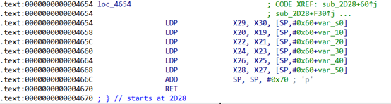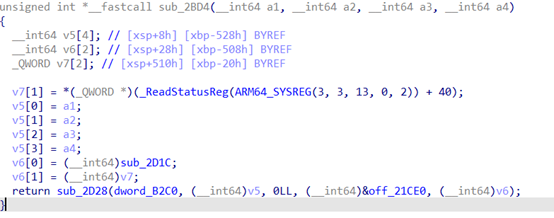sub_2BD4主要调用sub_2D28,入参dword_B2C0为一组内存数据,v5为sub_2BD4的四个入参,off_21CE0为一个长度为8的字节变量,v6为一个中转函数,继续往下可以看到主加密的函数sub_2D82的cfg如下: