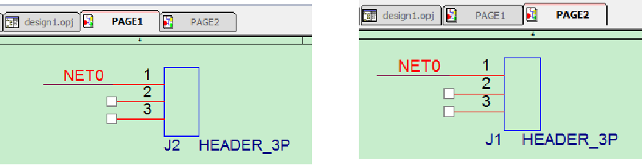 示例:不同原理图页面中的出现相同的网络名NET0,且未使用off-page connector,DRC检查会报警告