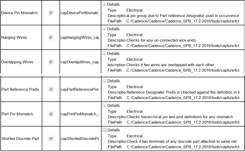 从Orcad Capture的DRC界面中可以看到,Electrical Rules共有8个可选的规则加1个可配置用户规则。