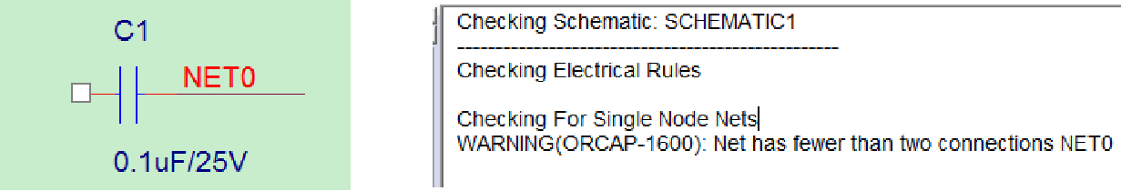示例1:NET0网络只连接了C1一个连接点,DRC检查报警告