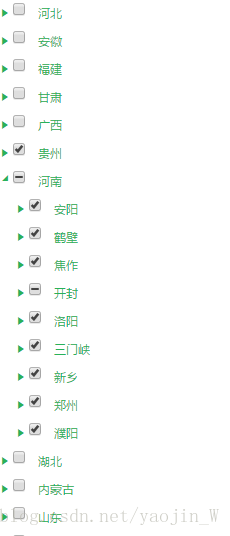 string result = [{"id":"河北","text":"河北","items":[{"id":"保定","text":"保定"}]},{"id":"河南","text":"河南",,"items":[{"id":"郑州","text":"郑州"},{"id":"洛阳","text":"洛阳"}]}];