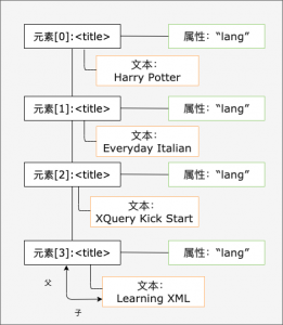 下面的图像表示 "books.xml" 中 <title> 元素的节点列表: