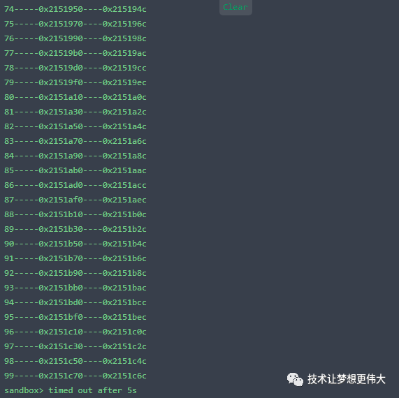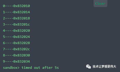 感觉像是有个固定的间隔,这里测试结果间隔是0x20,但地址并不是连续地址,具体为什么后面我们会讲到。
