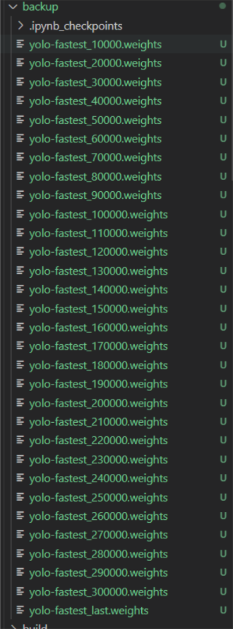 训练模型结束后,会在Yolo-fastest/backup中保存模型权重。我们选择最后一轮的权重,用于转换。