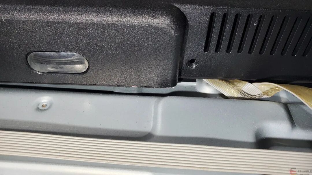 打开后壳,拆解后壳的时候螺丝取下,还是有卡扣的,撬开卡扣,边角有老化痕迹,以及螺丝固定处老化,很脆。