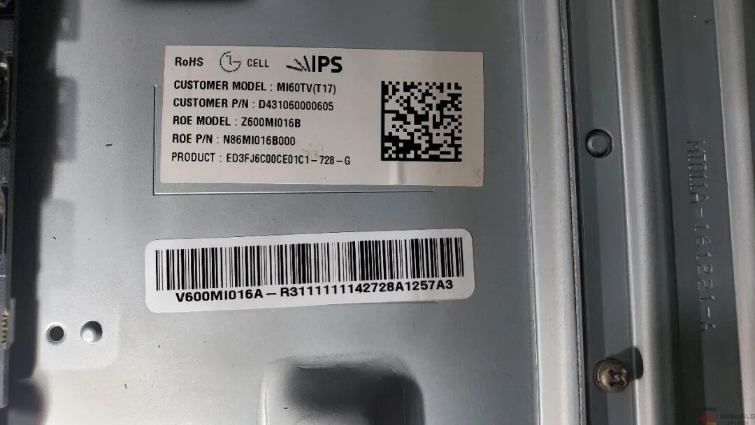 小米电视 3S 60 英寸(Mi TV 3S 60”)的主板,型号为 V600M1016A / MI60VT(T1),由 京东方(BOE)与小米联合设计、冠捷或兆驰代工
