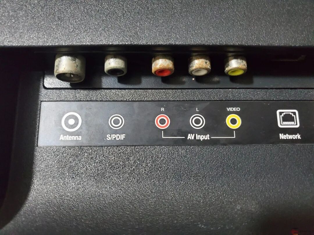 背部接口,天线接口,S/P DIF同轴音频口,AV输入接口,网线接口。
