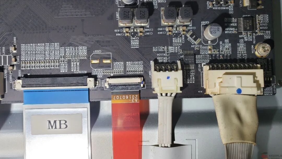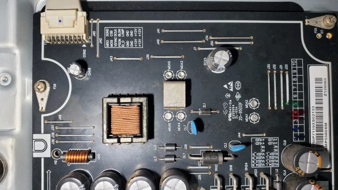 可以看到,左边大板是电源板,中间T-CON屏幕驱动板,一分二,把主板送来的信号“翻译”成屏能懂的电压,控制每一行像素点亮顺序!