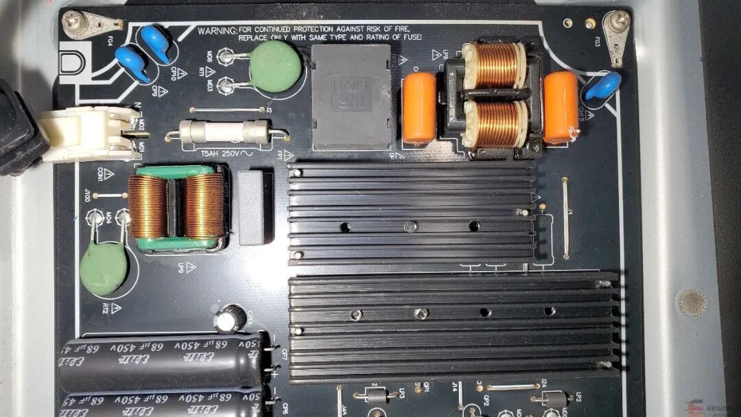大电感、两颗大电容和热敏电阻是典型的 初级高压滤波部分。