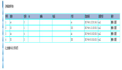 实现了前台用户留言信息的管理和回复,通过后台对前台的管理和查看,管理员可以查看用户的留言信息,并能对留言进行合理的回复。留言板的管理,也做到了信息的共享和交流,留言板的界面如下所示: