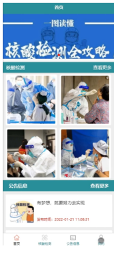 用户登陆小程序端,可以对首页、核酸检测、公告信息、我的等功能进行详细操作,如图5-3所示。