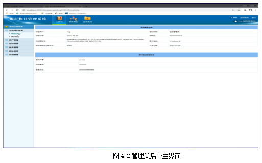 管理员的后台主界面中有对系统用户的管理、员工用户的管理等操作,主界面如下图所示。