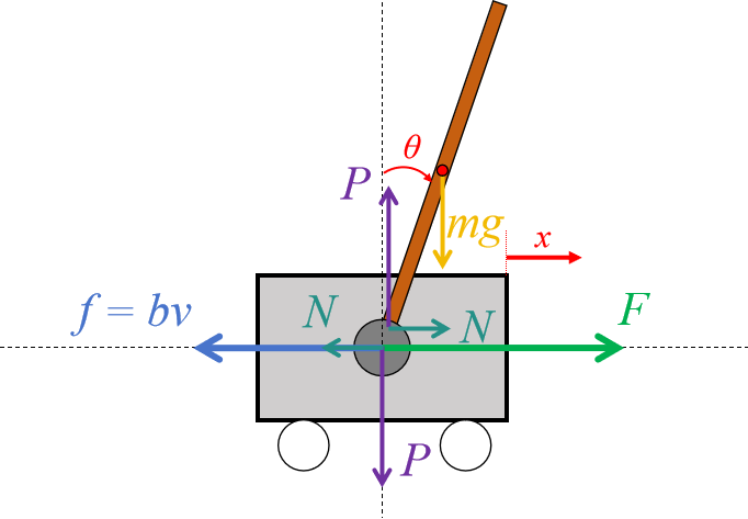 倒立摆系统的物理参数会决定系统的动态情况。将杆和车的质量分别记为和