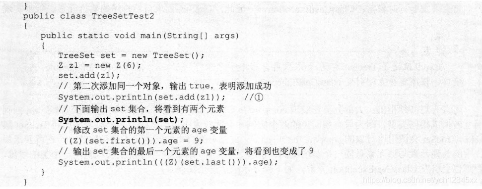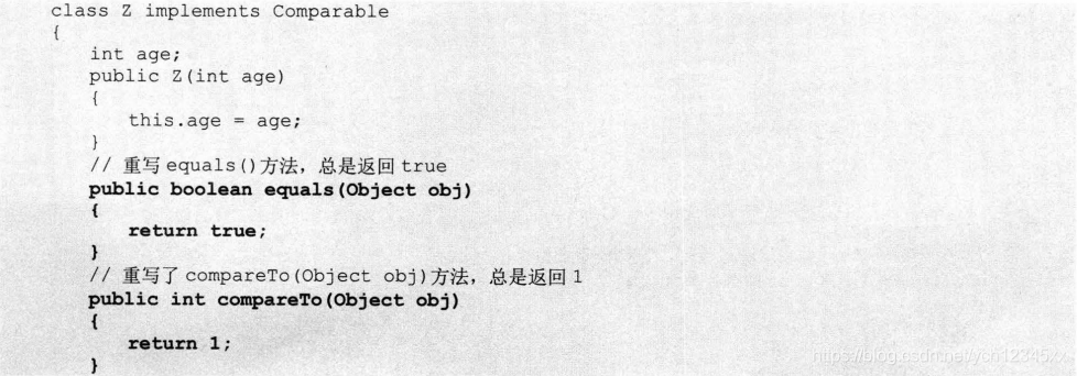 1)对于TreeSet集合而言,它判断两个对象是否相等的唯一标准是:两个对象通过compareTo(Object obj)方法比较是否返回0————如果返回0,表示相等;返回1,表示不相等。